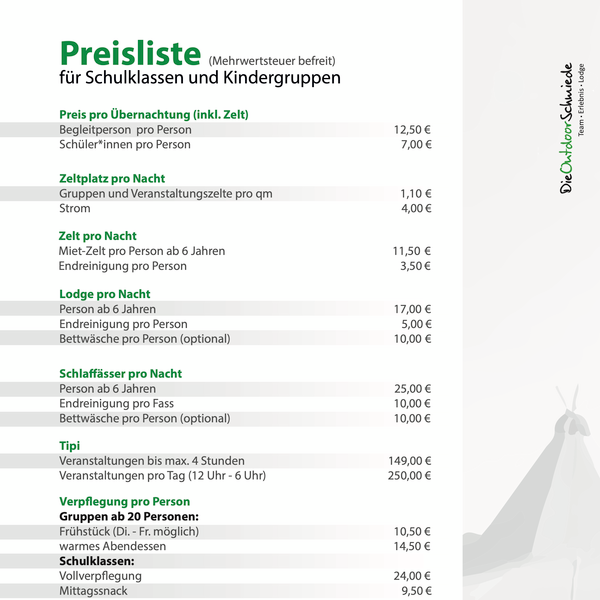 DieOutdoorSchmiede ohne MwSt. (z.B. Schulklassen)